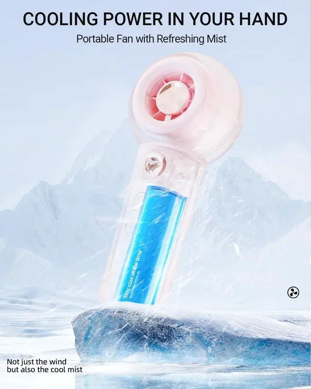 4-Speed Rechargeable Handheld Fan: Adjust your comfort easily with this rechargeable handheld fan featuring 4 wind speedsfrom gentle breeze to turbo airflow. Dual-button control allows independent operation of the fan and mist. Whether you need a quiet mini handheld fan indoors or a strong portable fan handheld outdoors, it adapts instantly.