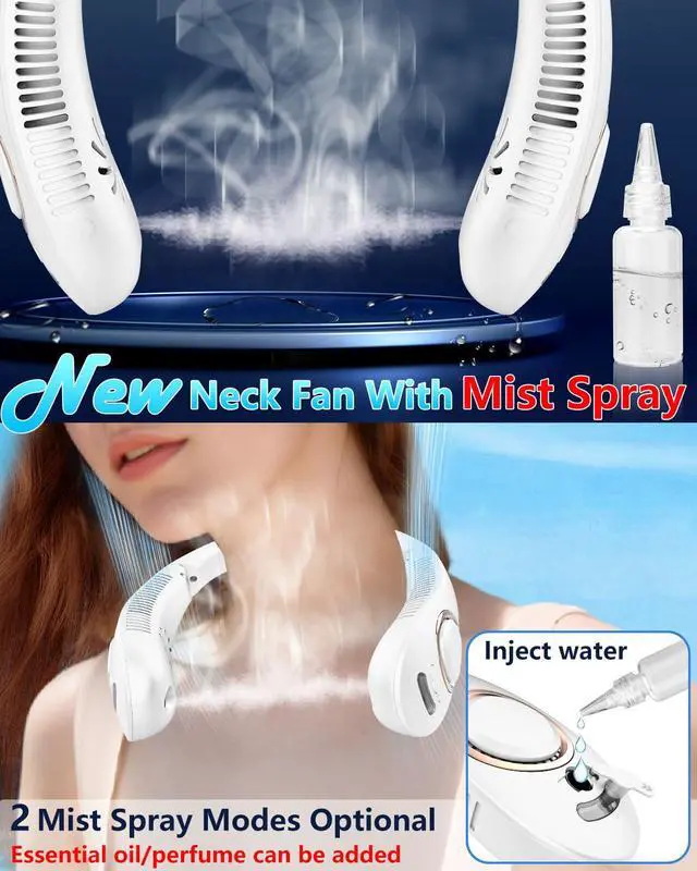 Neck Fan with Mist Spray, Portable Neck Fans that Blow Cold Air ,Folding Bladeless Personal Fan Mister USB-C Rechargeable Cooling for Women Men Kids