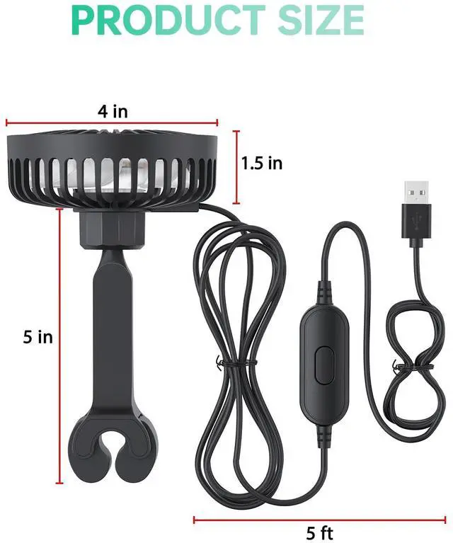 | Long USB Cable | The car cooling fan with 61 inches USB cable, long enough to easily plug into the car charger or power bank |