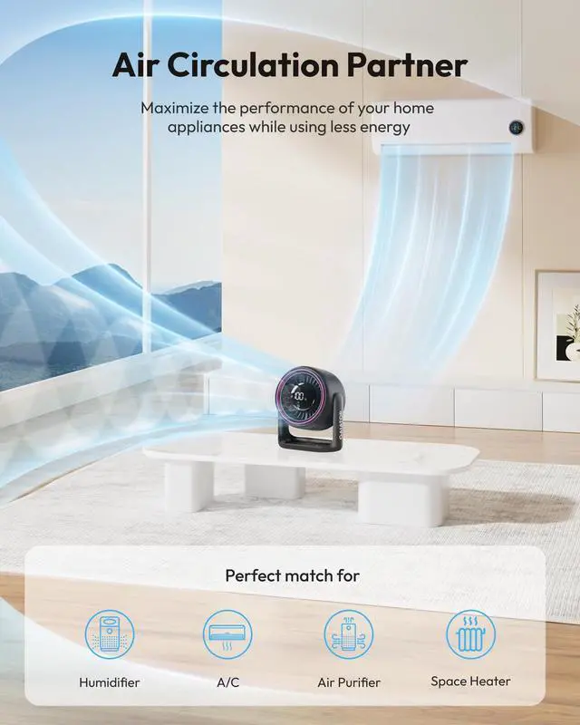 Experience strong airflow up to 5.2m/s while noise remains as low as 30dB—quieter than a library whisper. Perfect for offices, bedrooms, or study sessions.