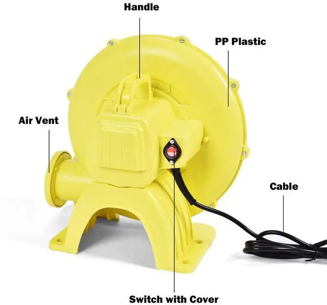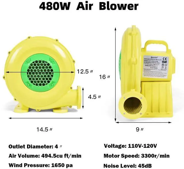 This Is Our 480 Watt Blower, Which Isdesigned For Medium To Large Bounce Houses. The Power Rating Of This Blower Is 480 Watts Which Is 0.64 Horsepower. This Blower Is Great For Other Construction Applications As Well Such As Drying Wet Carpet, Blowing Off Sidewalks, Or Cleaning Up Leaves In The Yard
