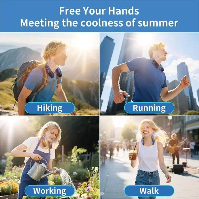 Hands-free Design & LighterOnly 9.5 ounces, the neck fan is ultra-light, putting less strain on your neck. Its hand-free design is to release your hands. The fashion style makes you look cool and you can take it anywhere in hot weather, suitable for trave, outdoor, office, travel, camping etc