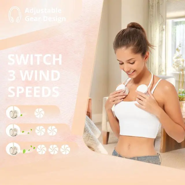 Portable Neck Fan, Neck Fan, 3 Speeds Adjustable Personal Fans, Portable Bladeless Neck Fans, USB Rechargeable Personal Fan, Personal Wearable Neck Fan, Portable Hands Free Bladeless Fan