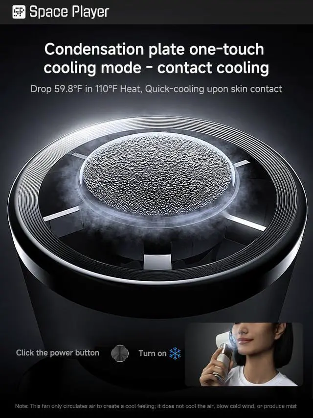 Cooling-Touch Handheld Fan | With Semiconductor Cooling Chip Powerful airflow, instant relief! Features a semiconductor cooling chip that reaches ~60°F in 10 sec and holds steady. Cooling requires skin contact its cool material delivers refreshing chill. Air cooling + direct-touch cooling dual relief for lasting comfort in heat