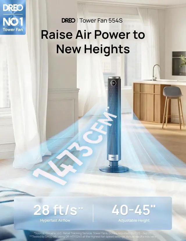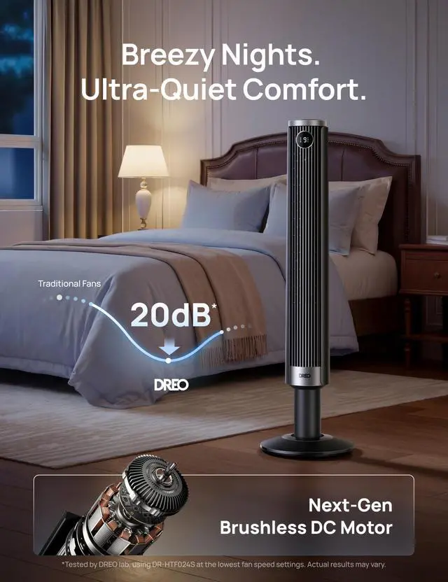 | Included Components | 1 × DREO Tower Fan (DR-HTF024S), 1 × Quick Start Guide, 1 × Remote Controlincludes 2 × AAA Batteries, 1 × User Manual, A Set of Accessories |
