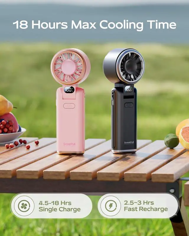 UP TO 18H POWER + USB-C FAST CHARGE: The rechargeable handheld fan delivers up to 18 hours on low speed for all-day travel and daily commutes. Recharges in about 3 hours with USB-C.