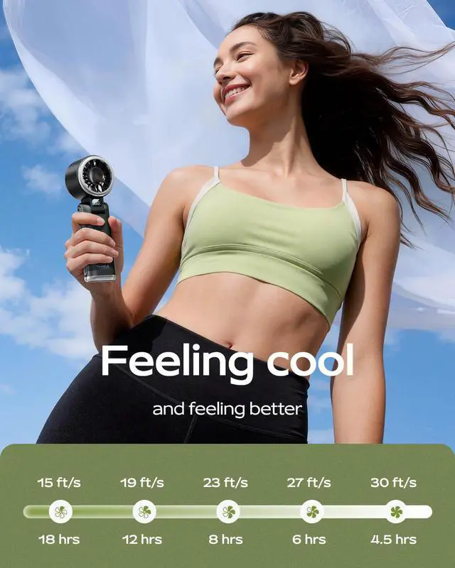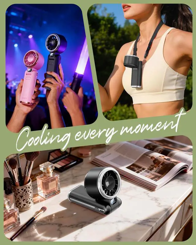 5 SPEEDS FOR EVERY MOMENT: Choose from 5 speedsgentle airflow for makeup, lashes, and desk work, or higher speeds for outdoor heat, concerts, festivals, and beach vacations.