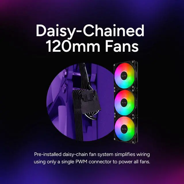 Daisy-Chained Fans: Pre-installed daisy-chain fan system simplifies wiring using only a single PWM connector to power all fans.