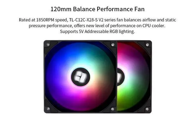 [CPU Cooler Specifications] Model: Peerless Assassin 120 Digital ARGB Black, overall size: 138x125x162mm, fan size: 120x120x28mm, fan speed: 1850RPM+10%, wind pressure: 2.21mm H2O, air volume: 88.89CFM, operating noise: 25.6DB (A), fan power supply interface: 4PIN PWM, the radiator is equipped with dual fans with S-FDB bearings, which have the characteristics of long life and can ensure long-term heat dissipation of the cpu radiator