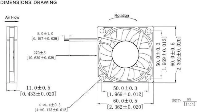 Air flow: 13.6CFM±10%/14.3CFM±10%/17.2CFM±10%/12.6CFM±10%(USB).