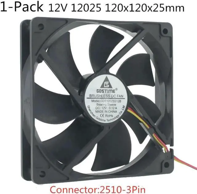 1 x 120x120x25mm 12V 3Pin/4Pin/USB Fan