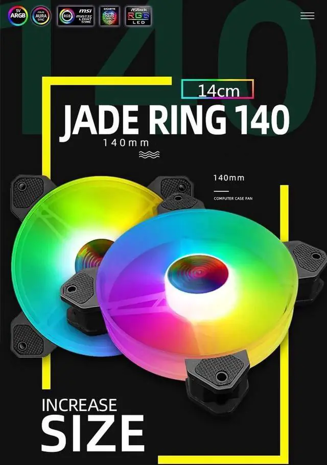 140mm RGB case fan overall is transparent Bright and beautiful RGB:super multiple lightingmodes,12 kinds of monochromatic Adjustable.