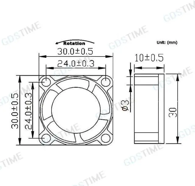 Dimensions: 30x30x10mm.