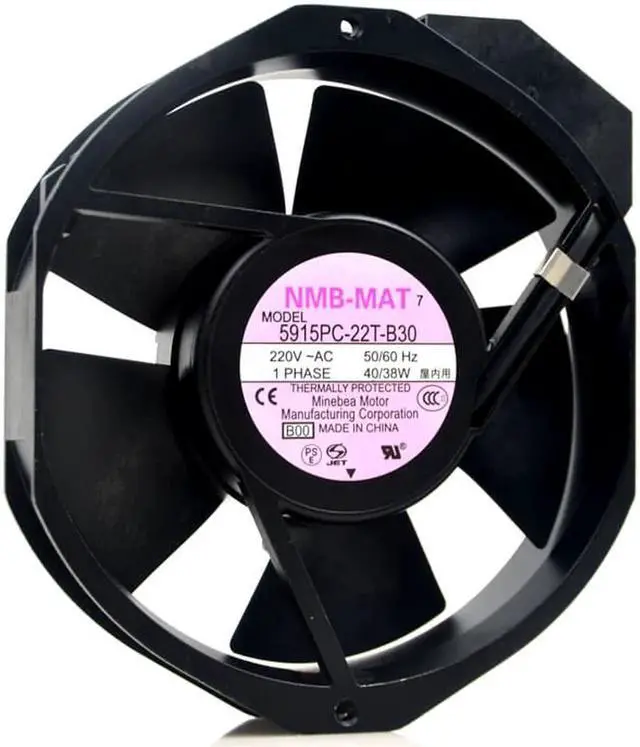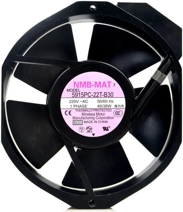 Category: AC fanManufacturer Part Number: 5915PC-22T-B30Description: NMB Technologies Corporation FAN AXIAL 172X38MM 220VAC TERMMinimum order quantity: 1Series: 5915PCVoltage - rated: 220VACSize / Size: Rectangular / Round - 172mm Long x 150mm High x 38mm WideAirflow: 212.0 CFM (6.00m?/min)Static pressure: 0.865 inches of water (215.6 Pa)Bearing type: ballFan type: tube shaftNoise: 56 dBPower (W): 38.0WRPM: 3200 RPMTermination: 2 terminalsIntrusion protection:-Weight: 1.8 lbs (816.5g)Working temperature: 14 ~ 158 °F (-10 ~ 70 °C)Application field Medical Rail vehicle Drive cooling Hotel Industrial cleaning Electronic product New energy vehicles SupermarketRegards for the Centrifugal/Axial fan,we have many differents models following for your reference,any your requirements ,our group will try our best to serve you.K2E190-AB77-09 fan module