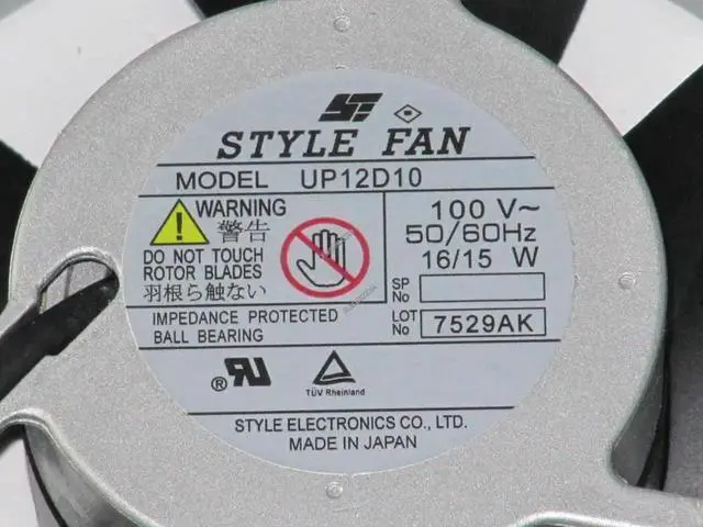 Brand: STYLE FANSize: 120 * 120 * 38mmModel: US12D10Voltage: 100VCurrent: 0.07 / 0.06APower: 16/15 (W)Speed: 2700/3000 (R / min)Air volume: 2.7 / 3.0m³ / minNoise: 45 (dB-A)Weight: 550 (g)Bearing: Ball bearingLife: 50000 (hours)Axial fansaxial fans prove their reputation as space-saving wonders by moving air for hot or cold air exchange in a wide variety of devices and systems. The outstanding features of axial fans are their small installation depth, low noise level and exceptional efficiency, and are particularly well suited for air flow through heat exchangers. the axial fan becomes a intelligent energy saver for an extremely wide range of applications.Application field Medical Rail vehicle Drive cooling Hotel Industrial cleaning Electronic product New energy vehicles SupermarketRegards for the Centrifugal/Axial fan,we have many differents models following for your reference,any your requirements ,our group will try our best to serve you