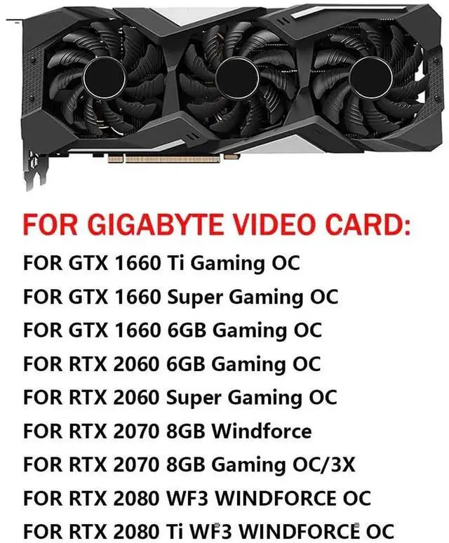 75mm Graphics Card Cooling Fans Suitable forGigabyte GTX 1660 1660ti 1660S RTX 2060 2060S 2070 2080 2080Ti WINDFORCE/Gaming Series Desktop 75mm PLD08010S12HH 12V 0.35A 4Pin Video Card Cooler Fan