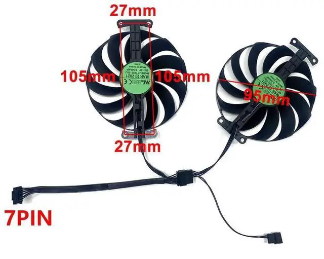 Graphics Card Cooling Fan Replacement forASUS ATS RTX3060 Dual RTX3060Ti RTX3070 V2 OC Series T129215SU 95mm 12V 0.5A 7PIN 6Wires Video Card Cooler Fans GPU Fan (2PCS)