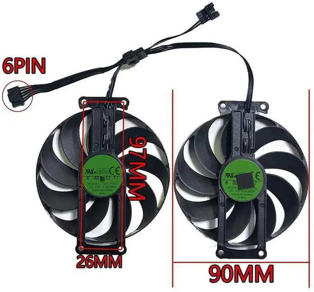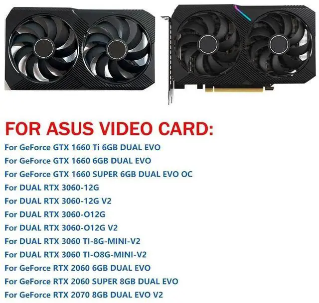 Graphics Card Cooling Fan Replacement forASUS GTX1660Ti Dual EVO GTX1660 GTX1660 Super OC Gaming RTX 3060 3060Ti Mini Dual RTX 2060 2070Ti Series 90MM T129215SU 12V 6PIN 0.5A Video Card Fans (2PCS)