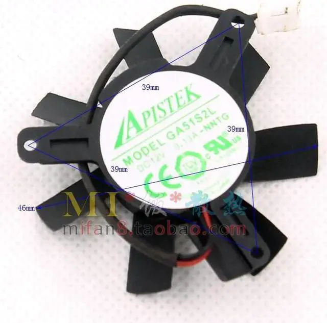 GA51S2U -NNT1 12V 0.25A 2Wire Graphic card fan for video card vga card