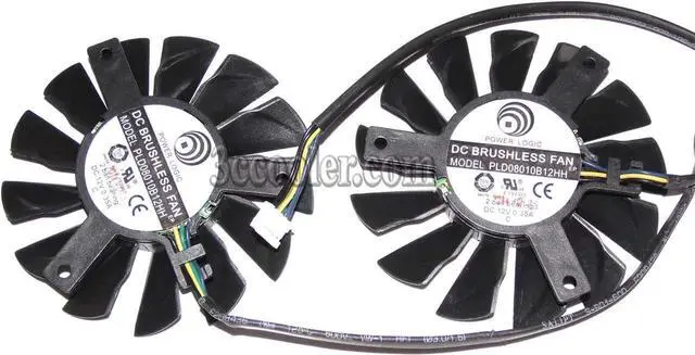 Twins Cooler of Power Logic PLD08010B12HH with 12V 0.35A 4-Wires For Video Card. Twins Cooler Black ones 3 mounting holes for each Any uncertainty about the product description, please leave us message. We will respond you within 24 hours.
