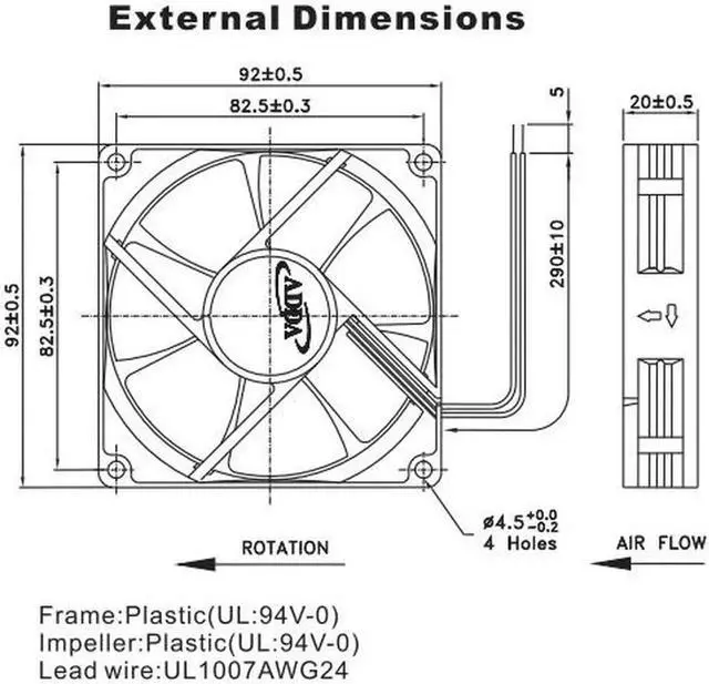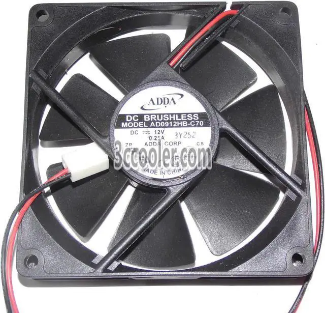 Square Cooler of ADDA 9020 AD0912HB-C70 with 12V 0.25A 2-Wires