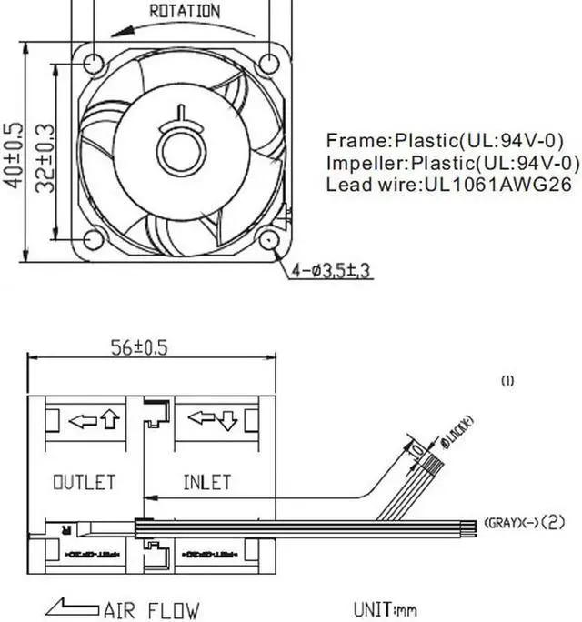 ADDA JARO 40x56mm AS04012UB565300 12V 1A (3 Wires 3 Pins)* 2 Server Cooling fan 4CM inverter Cooler