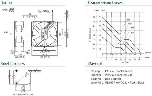 NMB 8032 3112KL-04W-B69 DC square axial Cooler with 12V 0.58A 3 Wires 2 Balls Bearing For Case