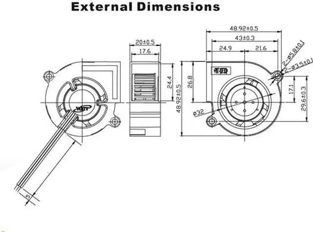 ADDA AB0512DX200600 5cm Blower Centrifugal Fan with 12V 0.15A 3 Wires 3pins Connector