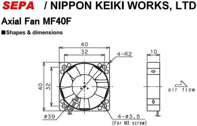 SEPA 4cm MF40F-12L Cooling fan with 12V 0.04A 2 Wires