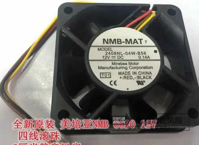• 20 Pcs / Lot NMB 6020 12V 0.14A 2408NL-04W-B56 6CM 2-Balls Bearing 4-Wires 4Pins Cooling Fan For case