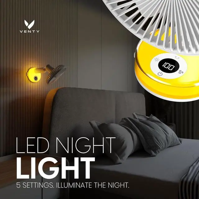 Personal Fan with Air in Every Direction - Forget about fixed fan airflow. With 360° rotation, 90° tilt,, and 120° oscillation, the Venty Clip Fan offers unparalleled flexibility to direct the breeze exactly where you need it. Stay coolyour way.