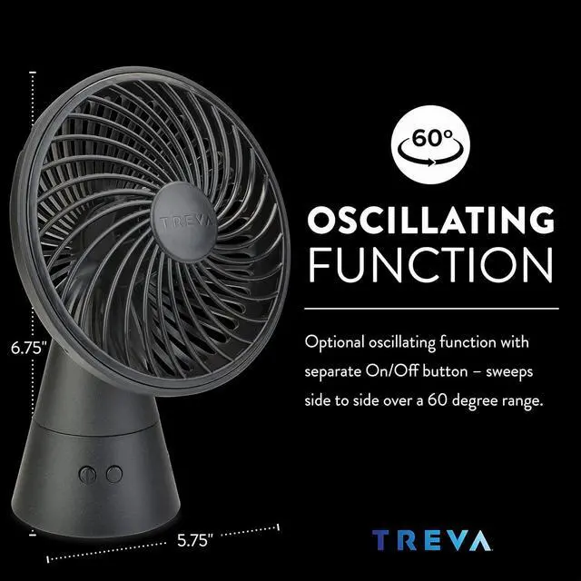 RECHARGEABLE Our 5-inch desk fan from Treva is fully rechargeable, micro USB charger included, no batteries required. Great Desk Accessories Fan for Bedroom or Travel Fan