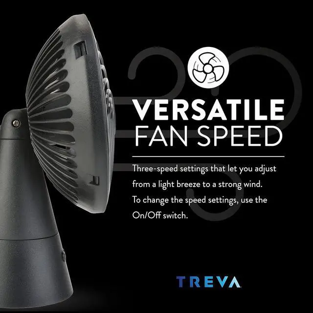 3 SPEED CONTROL The rechargeable oscillating fan features three speed settings. Adjust from a light breeze to a strong wind! Use the on/off switch to toggle through speeds.