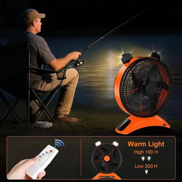 LED LanternThis outdoor camping fan has 56 LED beads with 2pcs Hidden LED warm light brightnesses to illuminate your surroundings, perfect for low light environments or night time use, ideal portable fan for camping tents, bedrooms, camping, caravans, power outages and more