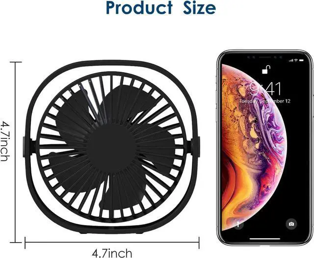 [Portable and Compact] Minni fan for desk is small ( 12.3 x 12.3 x5 cm) and exquisite, saves place, easily put into a bag inside. Weight ( 0.18 kg), usb desk fan perfect for office, desktop, outdoor activities or travel.