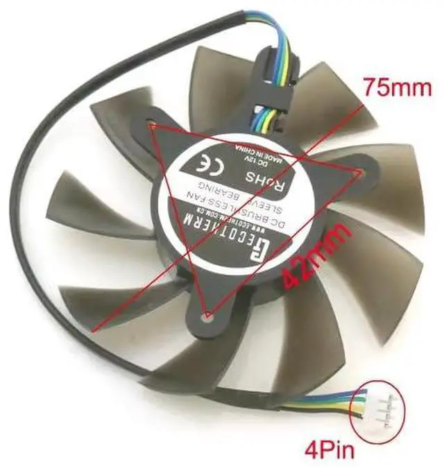 • 6 PCS DC BRUSHLESS Fan GFY08010E12SPA 75mm 4Pin for RX580 8GB V1 MINI-ITX Graphics Card Cooling Fan