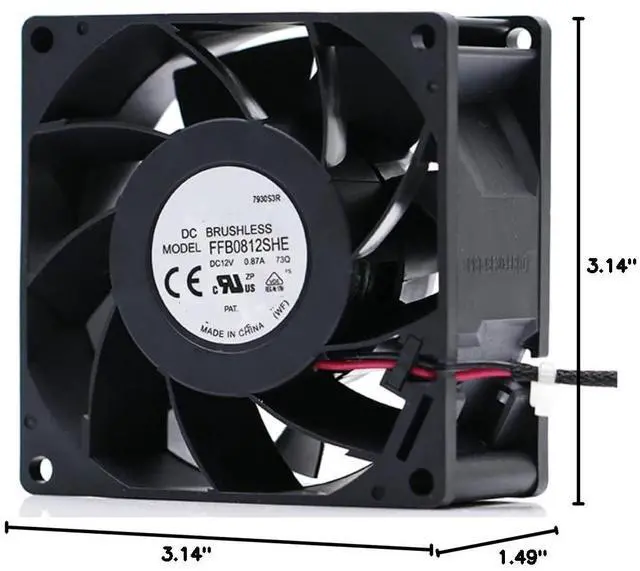 for FFB0812SHE 12V 0.87A 4900RPM 68.51CFM 48.5DB 80X80X38MM 2-Wire Cooling Fan