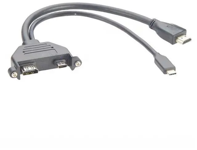 • Generic Dual Ports USB 3.1 C HDMI 2.0 Combo Extension Cable 10Gbps 4K@60hz Male to Female Screw Panel Mount for PC Dashboard