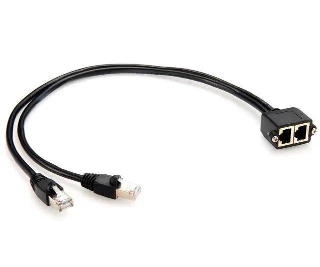 • Generic Dual Ports RJ45 Cat5e Male to Female Extension Cable Combined RJ45 8P8C LAN Ethernet Network Screw Panel Flange Chassis Cable
