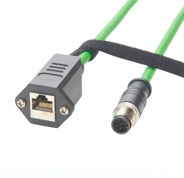 • Generic Screw Panel Mount M12 8Pin A Code to RJ45 Cat6A Ethernet Cable IP67 10Gbps GigE Vision High Flex Cable for Industrial Camera