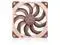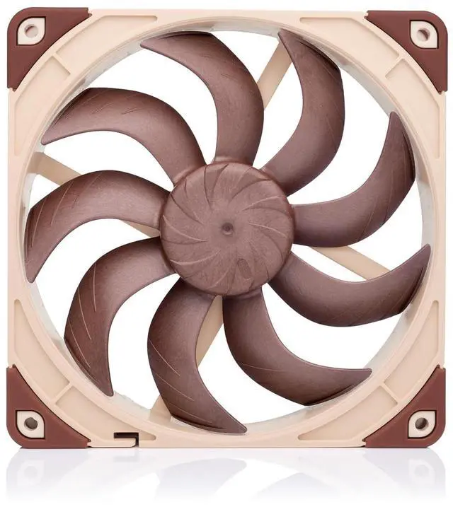 The NF-A14x25 G2 features a unique Progressive-Bend impeller with Flow Acceleration Channels and winglets. Its nine blades are swept backwards close to the hub and progressively bent forward further out. Working in tandem with the Centrifugal Turbulator hub, this design not only helps to push more air towards the outer blade areas where efficiency is higher but also assures maximum lift and near uniform loading across the entire blade span.