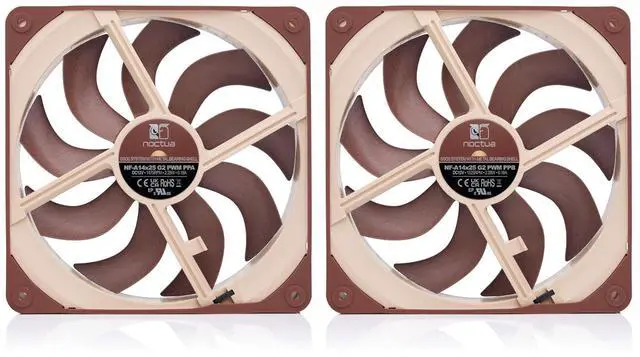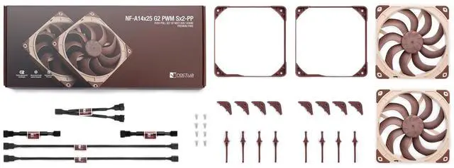 The NF-A14x25 G2 PWM Sx2-PP is a set of two NF-A14x25 G2 PWM square-frame 140mm fans that are offset in speed, which can be beneficial in push-pull operation as well as in situations where two fans are operating side by side, such as in case cooling applications or on 280mm water cooling radiators. When two fans are running at almost the same, constant speed in a push-pull configuration or, albeit to a lesser extent, side by side, their acoustic interaction can lead to undesirable harmonic phenomena such as intermittent vibrations or periodic humming due to interference, which can be heard as beat frequencies. Therefore, the two NF-A14x25 G2 PWM fans contained in the Sx2-PP set are slightly offset in speed (+/- ~25rpm) in order to avoid such phenomena. This fine-tuning is made possible by the fans novel etaPERF motor and its NE-FD6 driver IC that achieves extremely precise speed control and, thanks to its SupraTorque feature, can leverage extra torque headroom to keep the exact desired speed even when working against significant flow resistance such as on water cooling radiators and heatsinks. With one fan running ~25rpm slower (PPA) and one ~25rpm faster (PPB), the overall cooling performance can be kept the same while efficiently preventing intermittent vibrations or periodic humming. Since the perception of beat frequencies can vary depending on psychoacoustic preferences, users can easily further optimise acoustics by slowing the PPA fan down a little more through PWM control or the supplied Low-Noise-Adaptor, which will result in an even smoother sound signature due to the increased offset.
