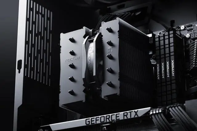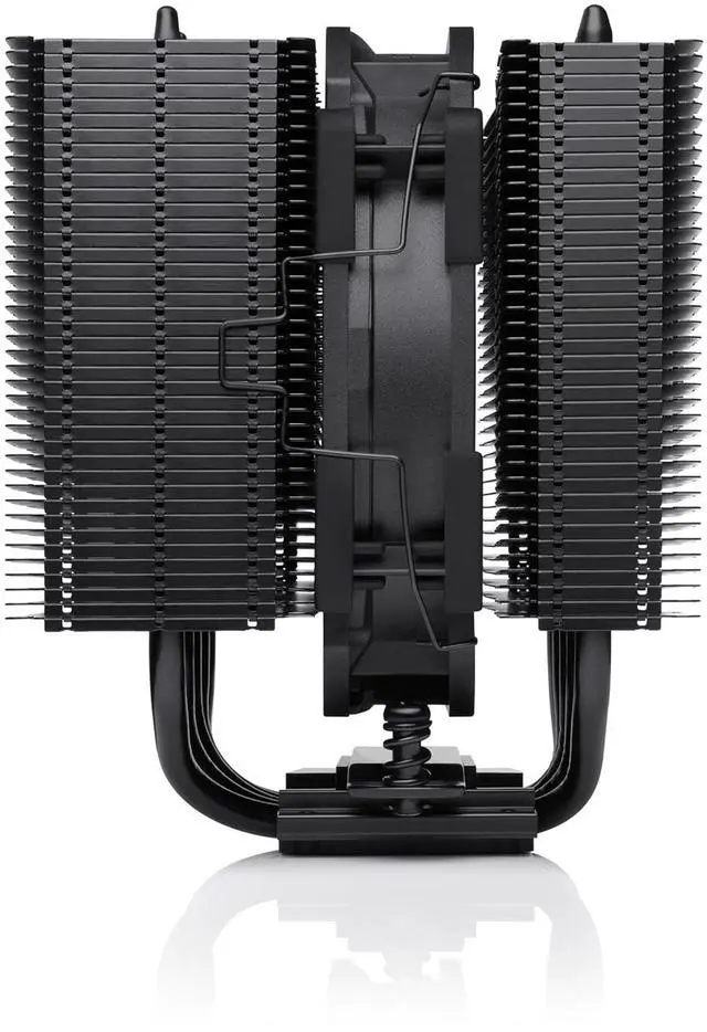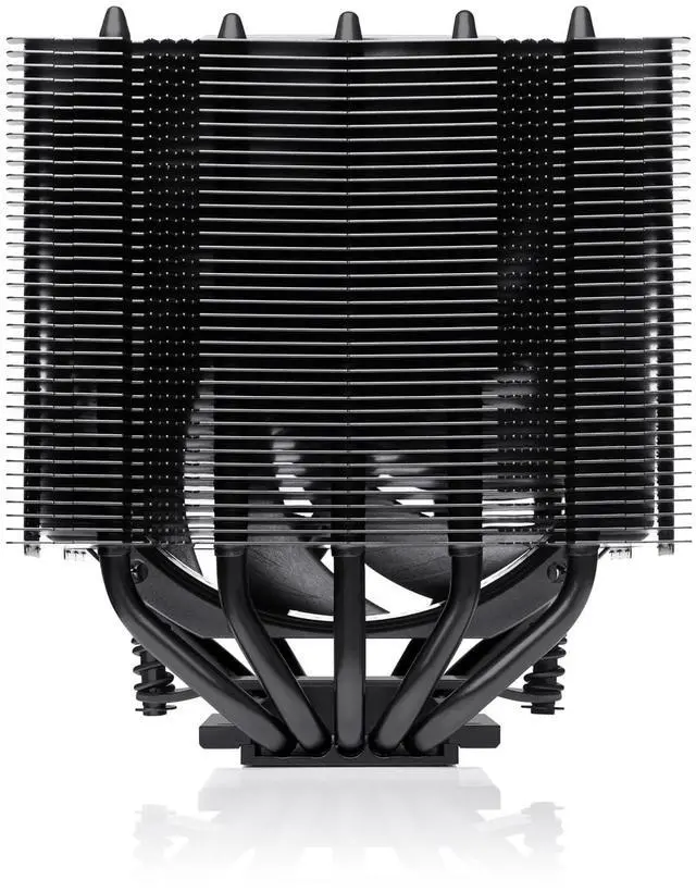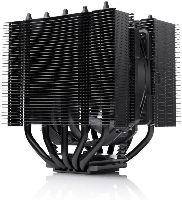 The NH-D12L chromax.black is an all-black version of Noctuas award-winning NH-D12L low-height 120mm class CPU cooler that has been conceived to combine outstanding quiet cooling performance with superior case compatibility. At a height of only 145mm (13mm lower than Noctuas regular 120mm models), it fits many 4U enclosures as well as narrower tower cases that have been previously limited to solutions with 92mm fans. At the same time, its five heatpipe dual-tower design and state-of-the-art NF-A12x25r 120mm fan allow it to achieve a level of efficiency that surpasses many full-height 120mm models. Thanks to its single-fan configuration and asymmetrical fin stacks, the NH-D12L provides 100% RAM compatibility on AMD AM5/AM4 and Intel LGA1851/1700/1200 by staying clear of the memory slots. Topped off with the renowned SecuFirm2 mounting system and Noctuas award-winning NT-H1 thermal compound, the NH-D12L is the perfect choice for applications that require serious cooling performance but cannot fit the larger NH-U12A.