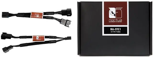 The NA-SYC1 is a fan accessory set consisting of two fully sleeved NA-YC1 Y-Cables for 4-pin PWM fans. The NA-YC1 Y-Cables make it possible to run two 4-pin PWM fans on a single fan header and to let the mainboard control the speed of both fans simultaneously. Multiple NA-YC1 can be daisy-chained to control more than two PWM fans via one header.