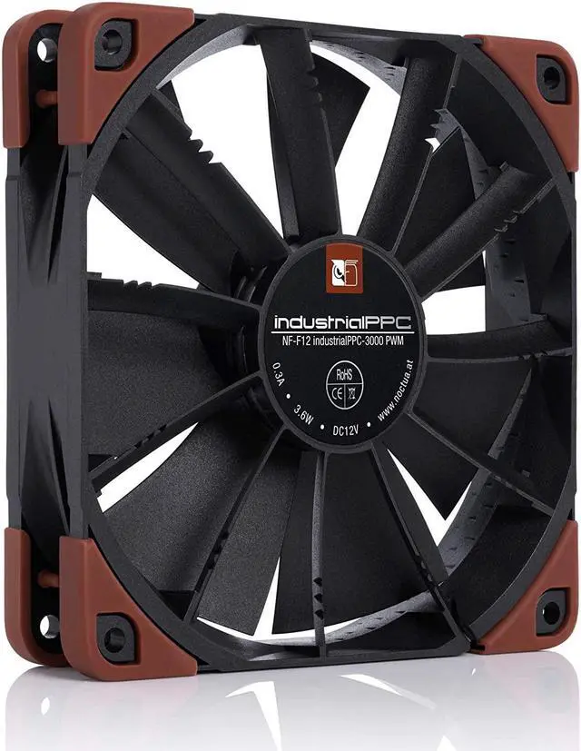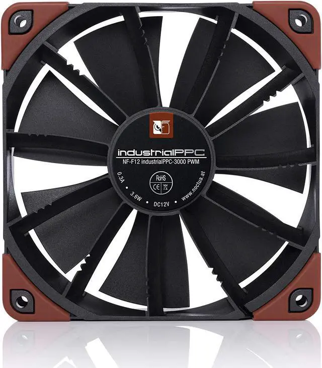 Conceived for industrial heavy duty applications that require enhanced cooling performance and advanced ingress protection, the NF-F12 industrialPPC (Protected Performance Cooling) is a ruggedized high-speed version of the award-winning retail model. Thanks to the outstanding aerodynamic efficiency of the NF-F12 design and the use of a novel three-phase motor, the industrialPPC version provides superior airflow and pressure capacity while keeping noise levels and power consumption moderate as against comparable high-speed fans. While its fiber-glass reinforced polyamide construction and certified water and dust protection make the NF-F12 industrialPPC suitable for operation in challenging environments, the renowned SSO2 bearing technology guarantees an MTBF of over 150.000hrs. Topped off with Noctuid's trusted reliability and 6 years manufacturer's warranty, the NF-F12 industrialPPC is an ideal choice for highly demanding applications that require superior flow rates and ultimate dependability.