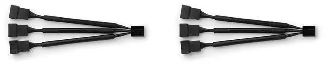 The NA-SC1 Sx2 is a set of two NA-SC1 3-way fan splitter cables that make it possible to power and control three fans through one fan header. By connecting the second triple splitter cable to the first, a total of five fans can be powered and controlled simultaneously. The NA-SC1 cables also feed the RPM signal of the fan on the first output connector back to the input connector so that PC motherboards or other fan controllers can read out the fan speed. The NA-SC1s 4-pin connectors are keyed to prevent misalignment and compatible with both 4-pin PWM and 3-pin fans. While 4-pin fans can be controlled through PWM, the speed of 3-pin fans can be adjusted using voltage control. Thanks to the high-quality black fibreglass silicone sleeving, the NA-SC1 cables are ideal both for use in PCs and for home or multi-purpose ventilation applications. Caution: Some PC motherboard fan headers only support up to 1A/12W (check your motherboard manual). When using the NA-SC1 cables in PC environments, make sure that the combined current/power draw of the connected fans does not exceed this value!
