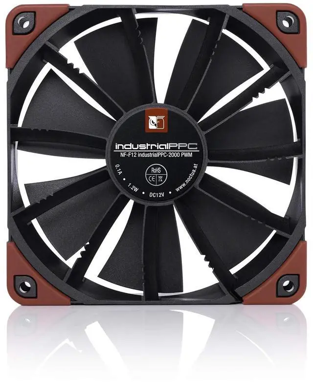 Designed for the most demanding industrial applications that need improved cooling performance and more advanced protection, the Noctua NF-F12 industrialPPC (Protected Performance Cooling) is a rugged, high-speed version of the company's award-winning model. Thanks to the incredible aerodynamic efficiency of the NF-F12 design and the use of a new three-phase motor, the industrialPPC version offers superior airflow and pressure capability, while keeping noise and power consumption levels low compared to high-speed fans. While its fiberglass-reinforced polyamide construction and certified water and dust protection make the NF-F12 industrialPPC suitable for use in extreme environments, the renowned SSO2 bearings guarantee an average life between failures (MTBF) of over 150,000 hours. This product features Noctua proven reliability and a 6-year manufacturer's warranty, making the NF-F12 industrialPPC the ideal choice for the most demanding applications that require superior air flow rates and maximum reliability.