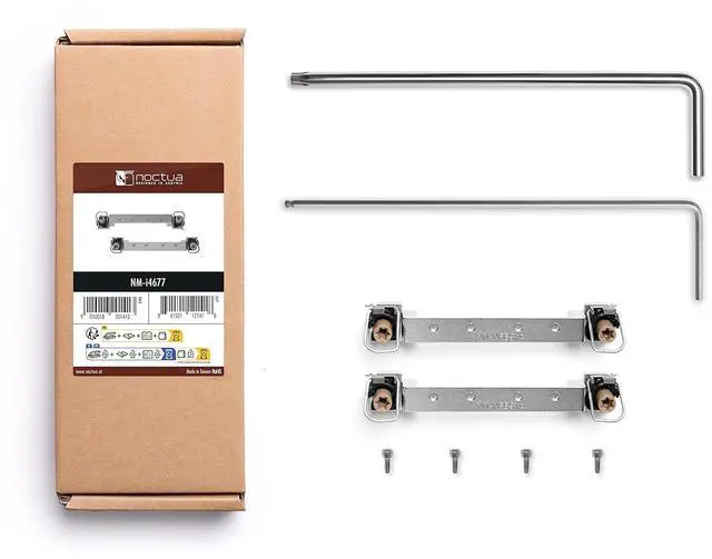 The NM-i4677 mounting-kit enables the installation of Noctuas DX-4189, DX-3647 and TR4-SP3 series coolers to Intels LGA4677 platform, for 4th generation Xeon Scalable (Platinum, Gold, Silver or Bronze) processors and w9, w7, w5 or w3 series workstation CPUs. Integrating standard Intel parts such as the anti-tilt mechanism, Torx T30 PEEK nuts the CPU-specific carrier frames (included with boxed retail CPUs and available separately for tray CPUs), the NM-i4677 is fully compliant with Intels installation guidelines and provides a familiar mounting procedure for experienced LGA4677 users. A Torx T30 mounting tool is included.