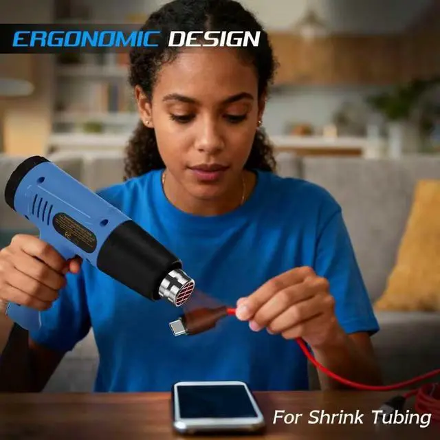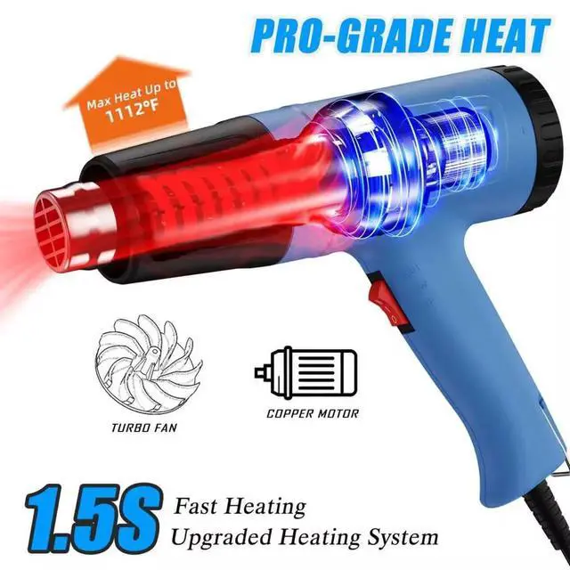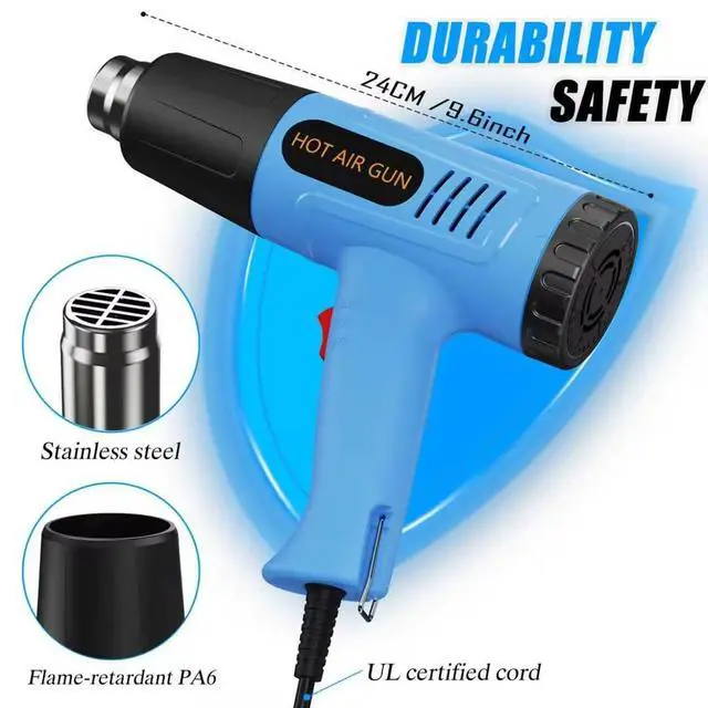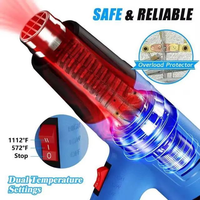 Fireproof Materials & Heat-Resistant Built with fire-resistant materials and high temperature-resistant material, this heatgun ensures durability and reliable performance. Integrated overload protection helps prevent overheating and improves overall safty during continuous use. Suitable for demanding tasks such as electronics phone repair, and extended craft heat gun projects.