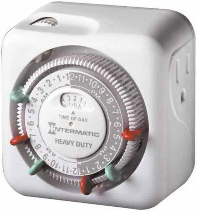 Plug-In Timer, Mechanical, Min. Time Setting 30 min, Max. Time Setting 30 min, 23 hr, Max. On/Off Cycles 3, Voltage 120V AC, Watts 1, 750 W, Amps 15 A, HP @ 120V 1 hp, Type of Switch Mechanical, Indoor, Receptacles 1, Receptacle Type 5-15R, Color White, Length 3 13/64 in, Width 3 13/64 in, Depth 3 13/64 in, Style Plug In, Standards cCSAus. This item has been restricted from sale in the following state (s): []